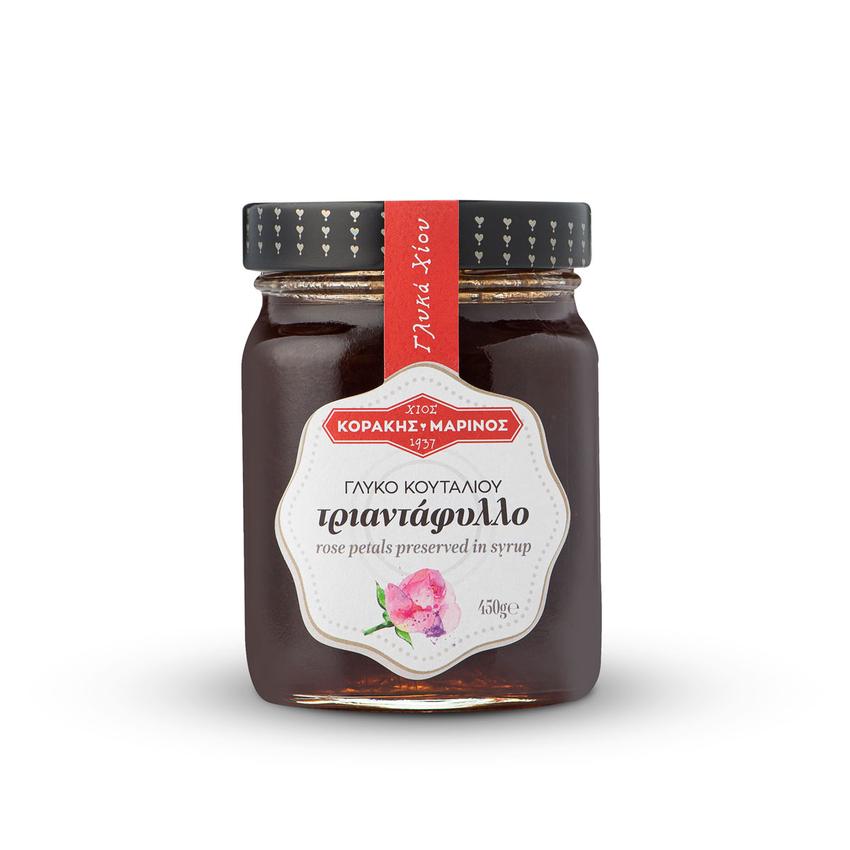 Παραδοσιακό, Χιώτικο, με υπέροχο άρωμα και γεύση, γλυκό κουταλιού από τα ροδοπέταλα εκατόφυλλης τριανταφυλλιάς.